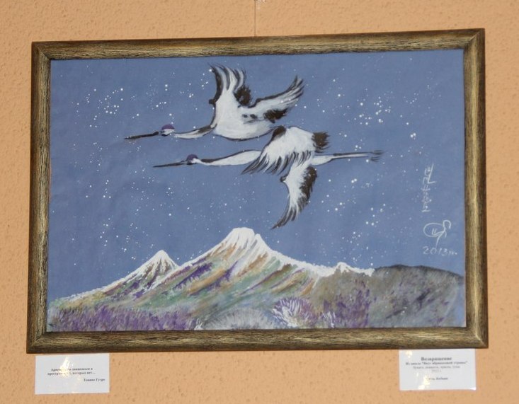 _M4bOIRWWss«Раньше у меня было активное общение со студентами, в аудитории на моих лекция присутствовали по 50-100 человек. И, когда я оказалась в Минске — у меня была потребность высказаться. Однажды я попала на выставку Марины Эльяшевич. Она тоже не профессиональный художник, она – экономист. Марина научила меня основам традиционной китайской живописи. Мне все это было очень близко, я много интересовалась живописью, музыкой, философией. По сути, ты пишешь то, что думаешь. И Марина научила меня держать кисть. А я начала думать. Я всегда ценила и умела понимать красоту. Красота должна быть в твоих действиях, в мыслях – во всем. Я совмещаю китайскую живопись и традиции армянских миниатюр. До того, как еще начала писать картины, я теоретически знала, что  испытывает поэт, писатель, художник, композитор, когда пишет — это муки. Но я знала, что у них должна быть цель, очень важная. О чем сказал Пастернак: «Цель творчества — самоотдача, а не шумиха, не успех. Позорно, ничего не знача, быть притчей на устах у всех». Истину этих слов, я поняла на деле, когда увлеклась живописью. Если истинная твоя цель — творчество, то ты достигнешь хоть чего-то маленького, но обязательно достигнешь», — рассуждает Ануш.