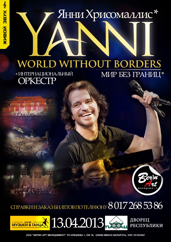 «Феномен инструментальной музыки» – таким титулом окрестили Янни ведущие мировые СМИ. Этот музыкальный гений покорил своими оригинальными мелодиями сердца слушателей США, Латинской Америки, Европы, Китая, Индии и ряда восточных стран. Его стиль разнообразен, а невероятные комбинации различных музыкальных инструментов невозможно описать словами – это надо слышать!